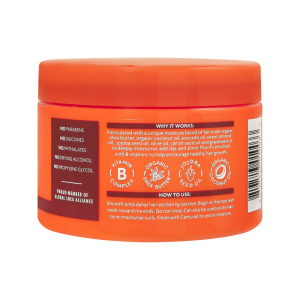 Smooth onto damp hair, section by section, beginning at the root and work toward ends. Do not rinse. Can be used on dry hair to re-moisturise curls.